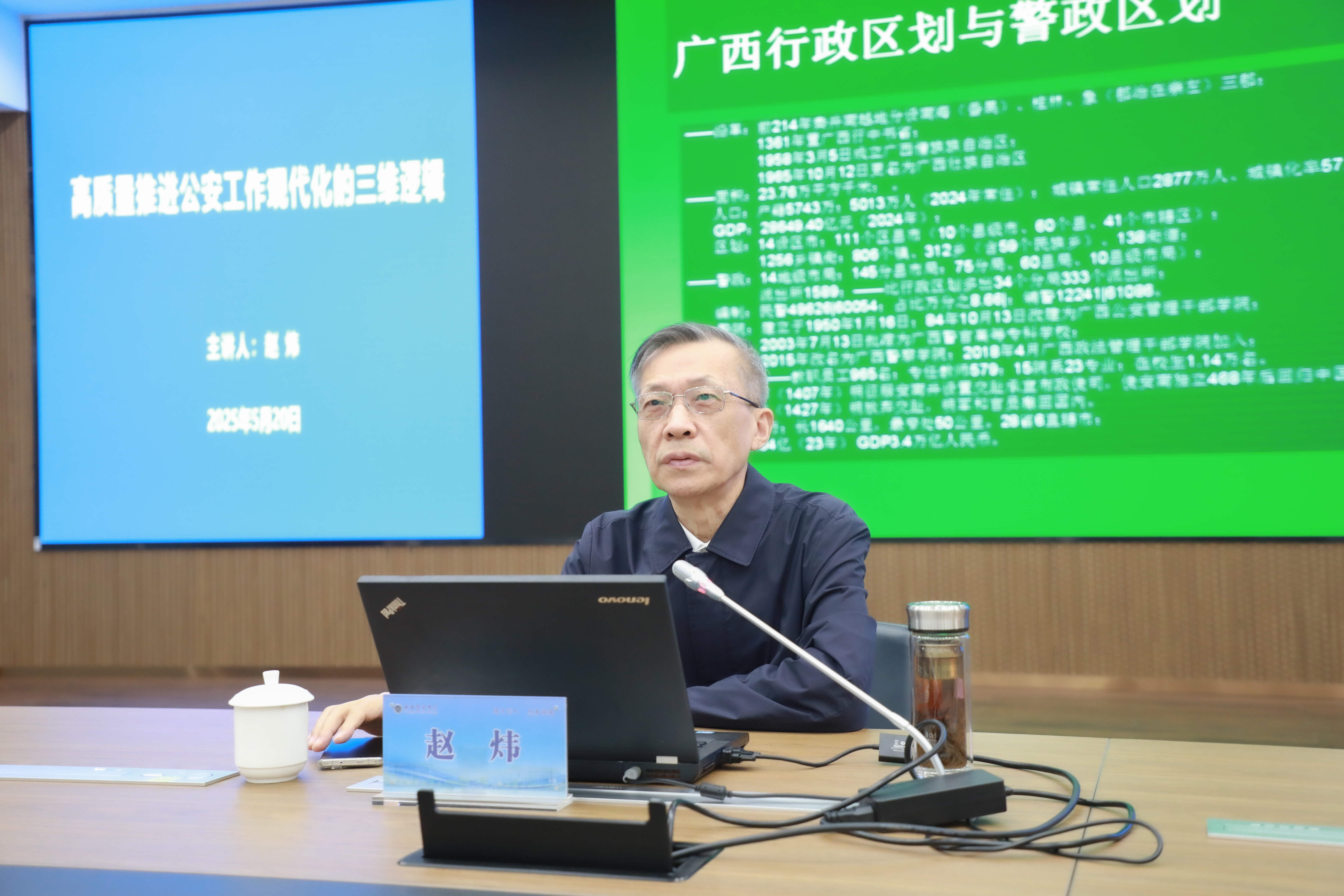 为推动学校教育教学与公安改革实践深度融合,培养适应公安工作现代化需求的高素质专业人才,5月20日,学校在仙葫校区公安研训基地举办《高质量推进公安工作现代化的三维逻辑》专题讲座,邀请公安部原改革办专职副主任、研究室副主任、一级巡视员赵炜授课。学校副校长蒋超主持讲座。