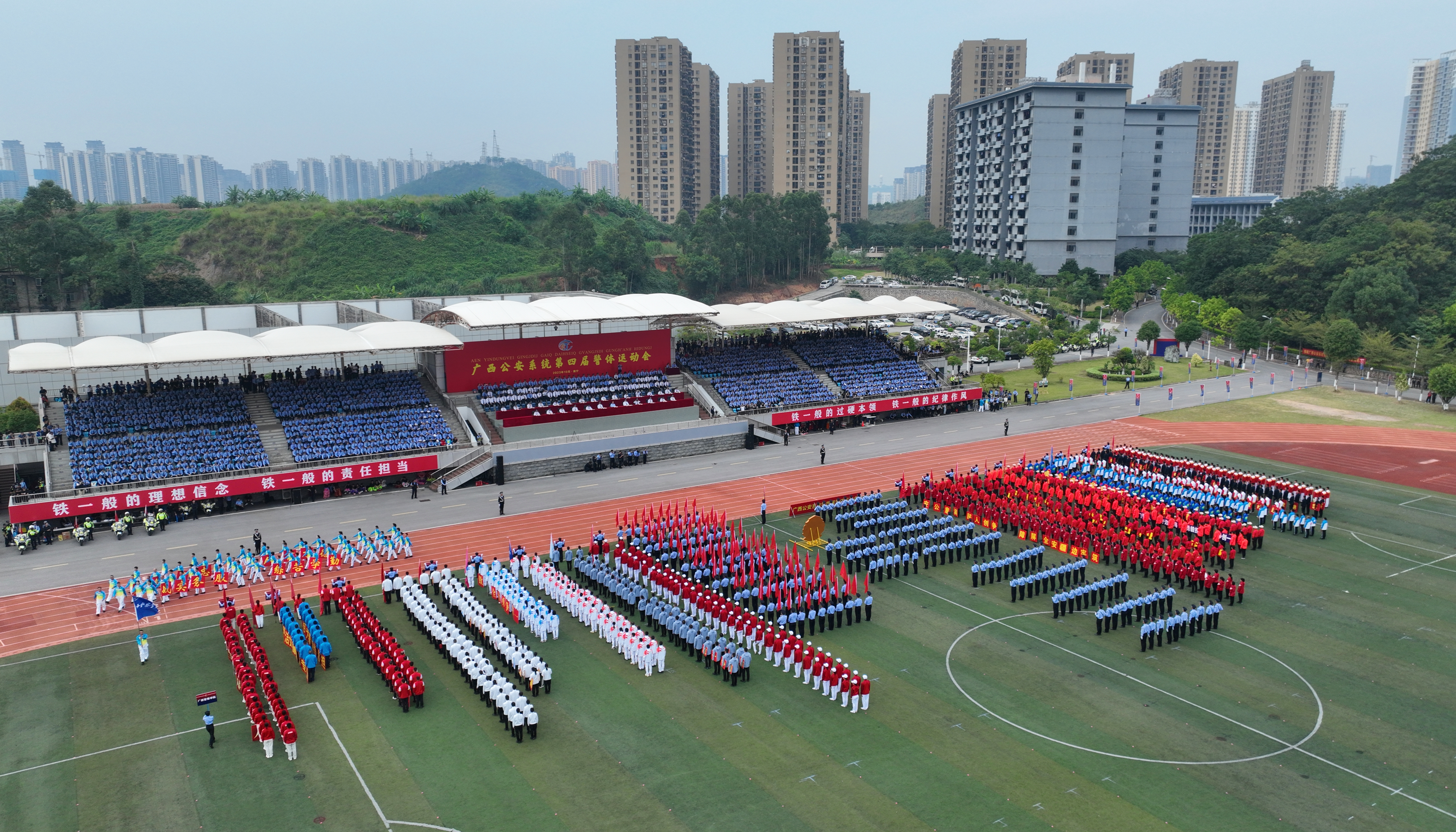 “现在,我宣布,广西公安系统第四届警体运动会开幕!”随着杨维林话音落下,运动会正式拉开帷幕,全场响起热烈掌声。