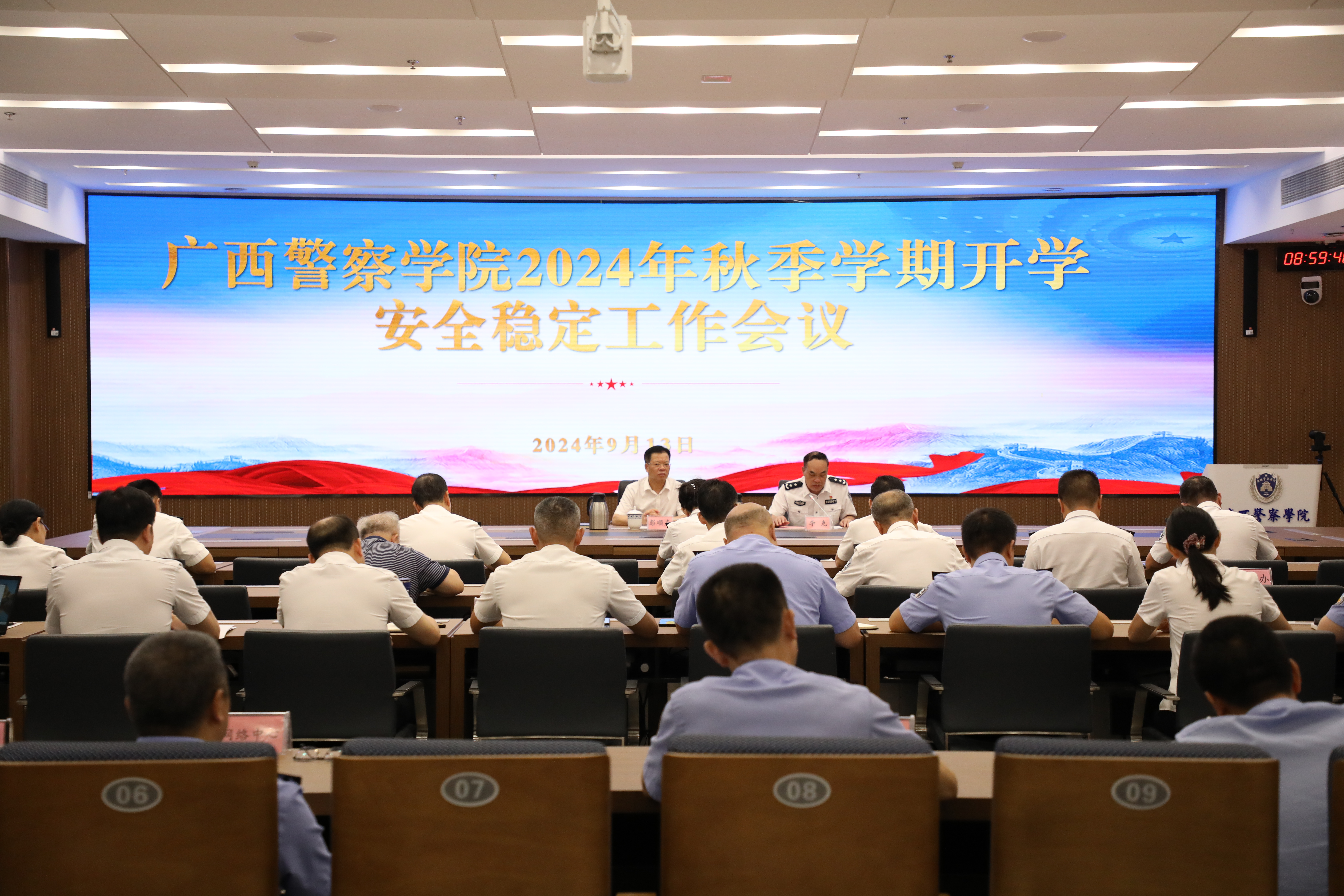 9月13日上午,学校在仙葫校区智慧公安研训基地召开2024年秋季学期安全稳定工作会议。学校党委书记彭顺克出席会议并讲话,副校长李克主持会议。