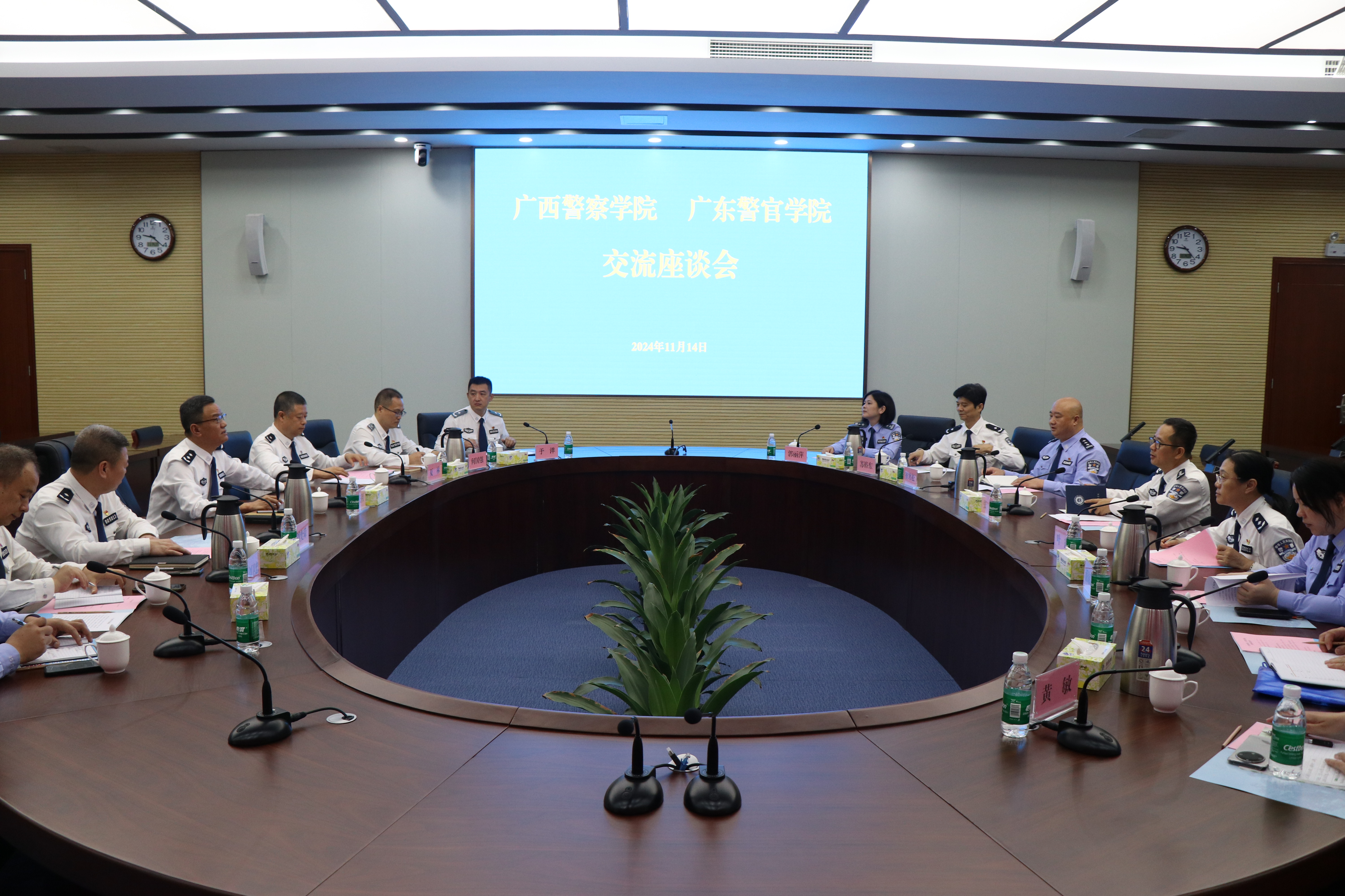 11月14日,张军一行到访广东警官学院。双方围绕科研机构管理运行、国际交流合作、在职民警培训、外警培训;二级机构绩效分配和社会服务创收、国有资本(资产)监督管理;硕士点申报和建设;高层次人才培养与引进等方面工作进行深入交流。双方一致表示,将继续深化各领域交流合作,共同推动公安高等教育高质量发展。