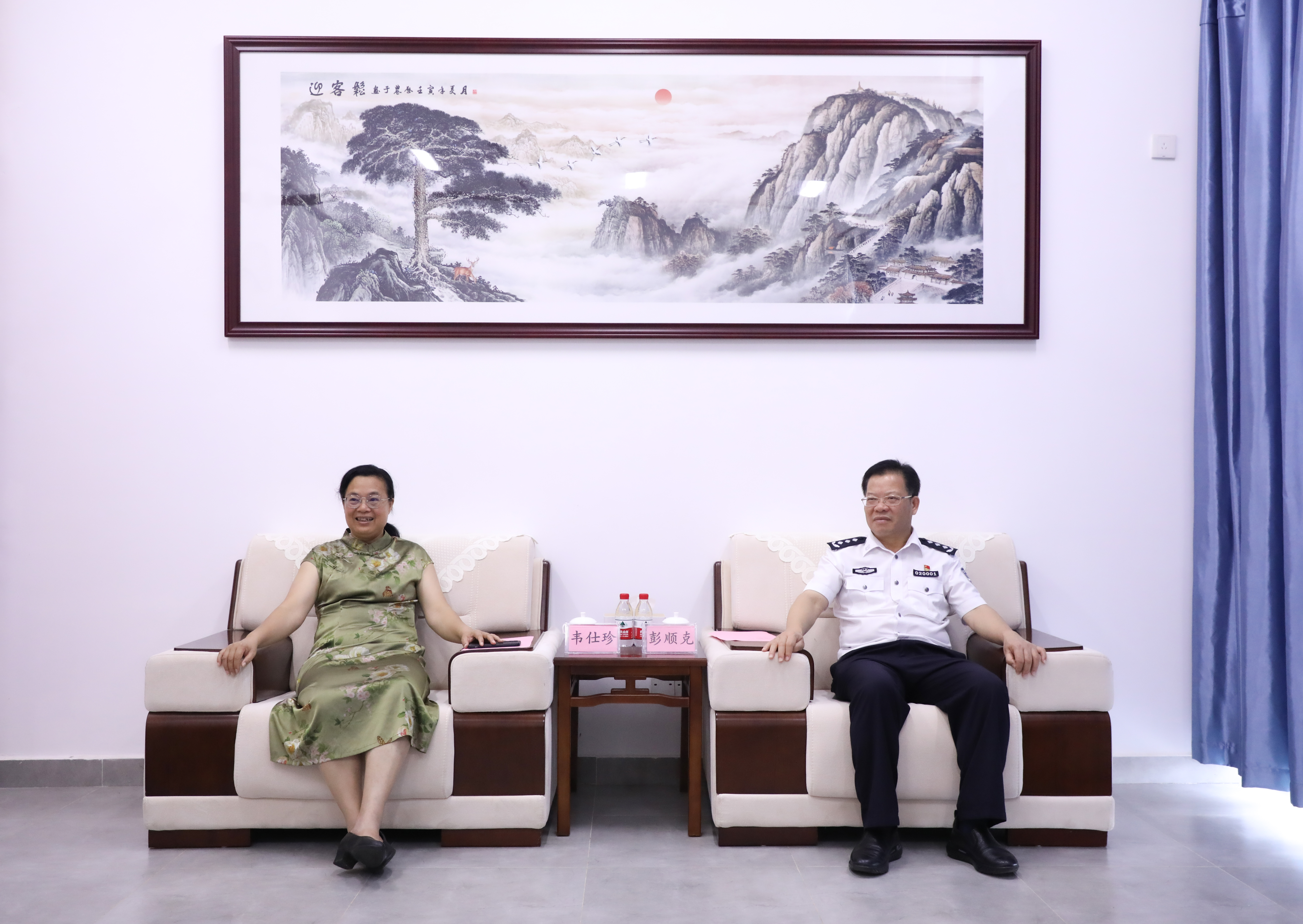 会前,韦仕珍一行参观了交通管理工程学院智慧交通实验室、大学生创新创业基地、警务实战训练设施等。