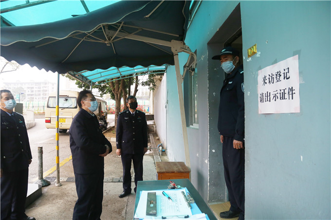 覃干超实地查看了各个校区的安保岗出入防控安保值班执勤情况。覃干超对各校区大门门岗的安保工作给予了充分肯定,他要求执勤时要注意观察,有情况要及时上报,一定要严格执行学校的规定,确保学校的安全稳定,为师生把好安全第一道关。覃干超还看望慰问了假期留校的2名学生,他叮嘱学生,留校期间要切实增强防范意识和自我保护能力,注意自身的安全和健康。他还要求学生要坚决服从学校统一安排,遵守防疫防控有关规定和纪律,积极配合学校做好防控工作。办公室、保卫处、国有资产管理处和后勤管理处等相关同志一同参加检查和交流。
