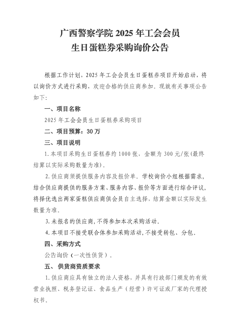 bat365中文官方网站2025年工会会员生日蛋糕券采购询价公告