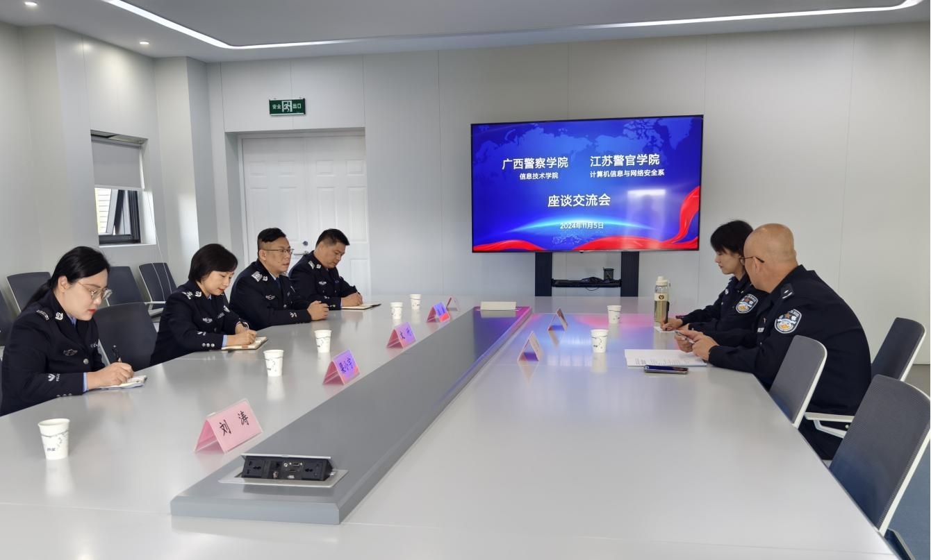 近日,我院网络安全与执法专业文竹、庞康、叶俊,大数据技术专业梁小宇,实训室刘涛等一行五名教师,于2024年11月3日至6日前往江苏南京,对南京警察学院信息技术学院和江苏警官学院计算机信息与网络安全系进行了为期四天的调研与学习活动。