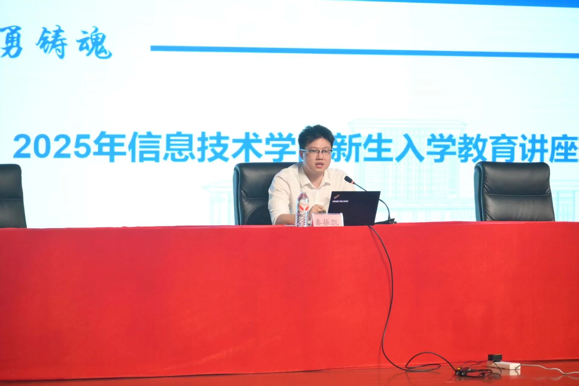 为帮助新生了解学院制度,适应校园环境。9月10日上午,我院在学术报告中心开展2025级新生入学教育工作。我院党总支书记李德杰,院长于小川,副书记邓新华,副院长蒋萍,秦振凯老师出席本次会议。