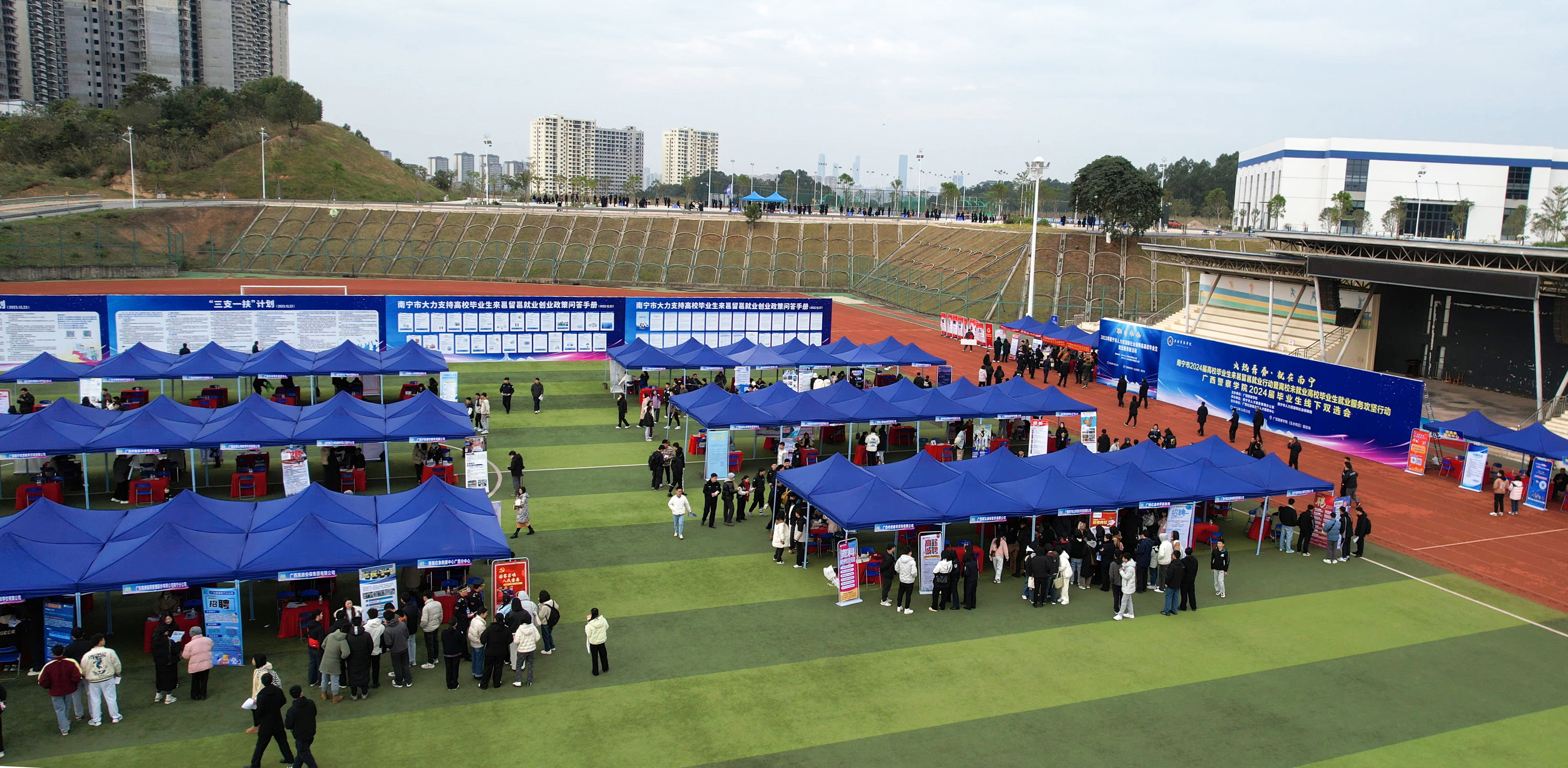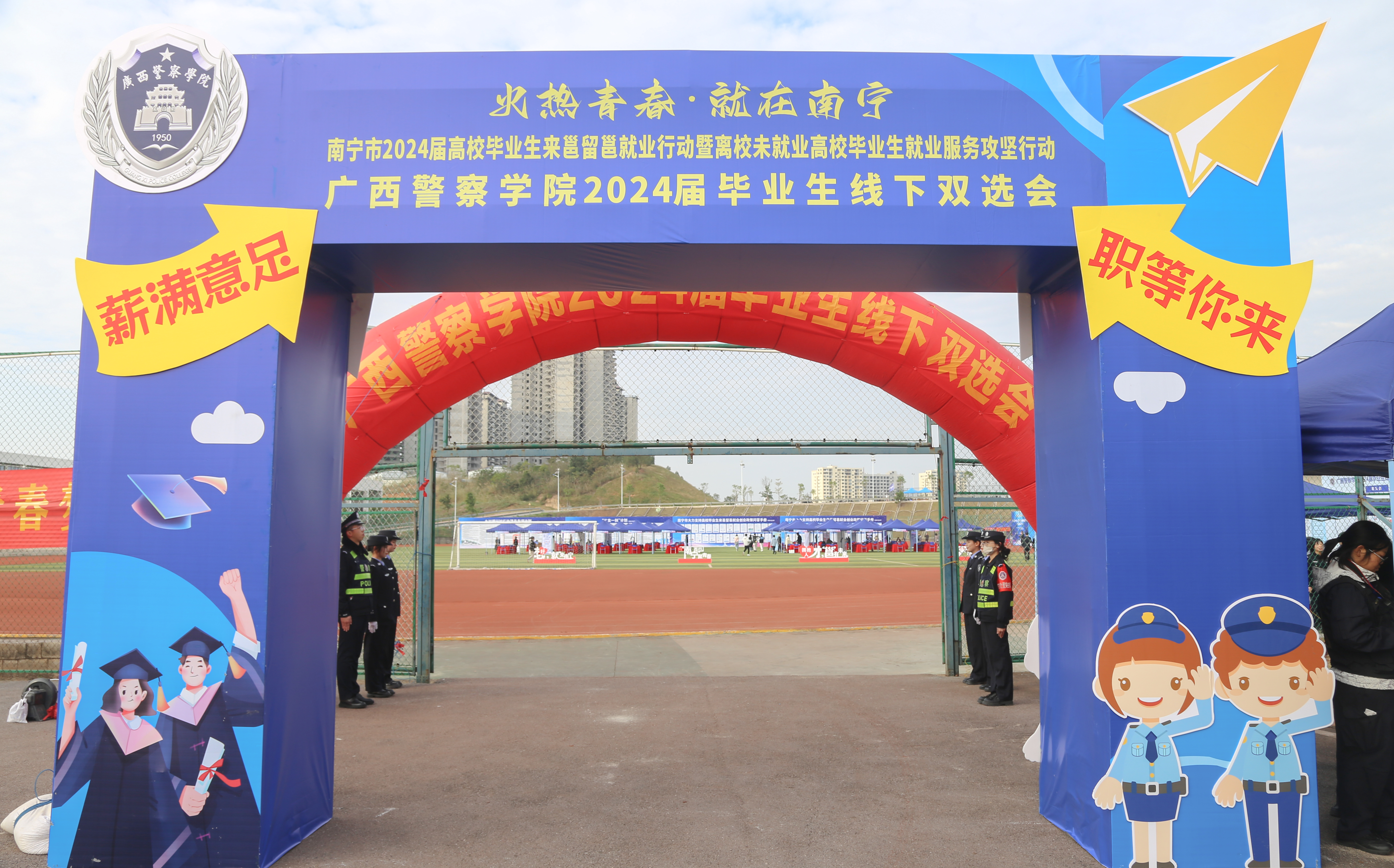 本次双选会由学校主办,南宁市人才服务管理办公室承办,自治区人才服务中心协办,吸引了广西区内外70家单位前来参展,提供就业岗位4445个,参会单位涉及教育、农业、金融、互联网、物流、法律、医疗、计算机、零售、电子、建筑等多个行业。学校2024届非公安专业毕业生1000人次入场参会,现场签约100人,有就业意向约500人。