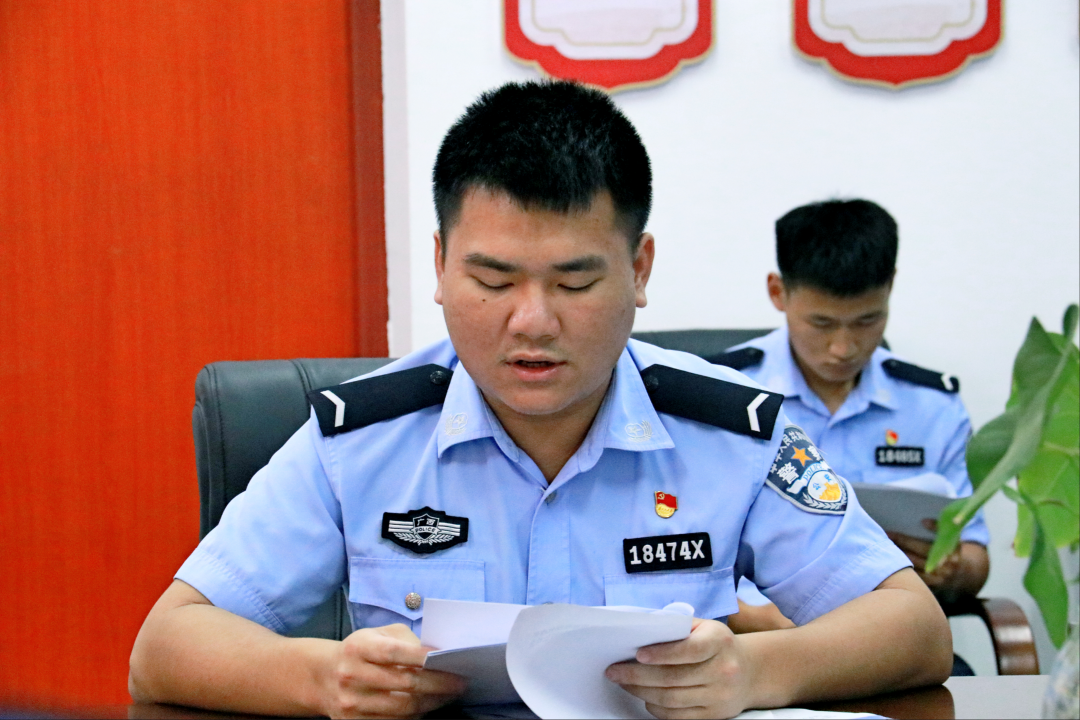 2018级治安学一区黎岳昊同学领读领学了“习近平总书记视察广西时的重要讲话和重要指示精神”。黎岳昊同学表示,作为预备警官的我们,必须坚持旗帜鲜明讲政治,坚定理想信念,矢志拼搏奋斗,牢牢把握对党忠诚这一永远不变的根与魂。