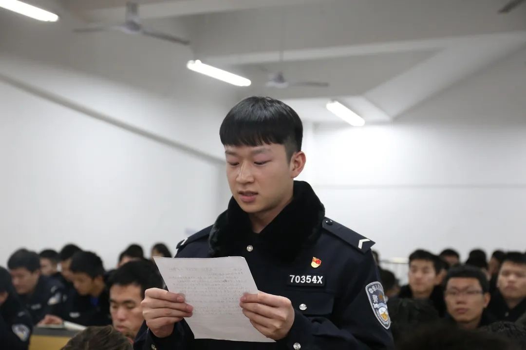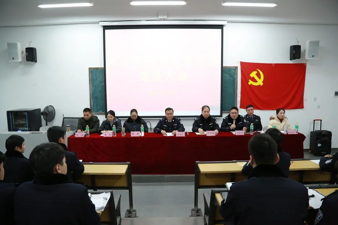 治安学院院长覃泽敏代表学院向各位民警教师和同学们致以节日的问候,对2016级成功上岸的同学表示祝贺,并预祝2017级同学在公安联考中取得优异成绩。随后,覃泽敏院长提出三点要求:一,成功转正的预备党员始终发挥先锋模范作用,以党员标准严格要求自己;二,新老党员在各自岗位中都要落实吃苦在前,享乐在后,践行使命,具备服务意识;三,进一步增强“四个意识”、坚定“四个自信”、做到“两个维护”,以优异成绩向建党100周年献礼。