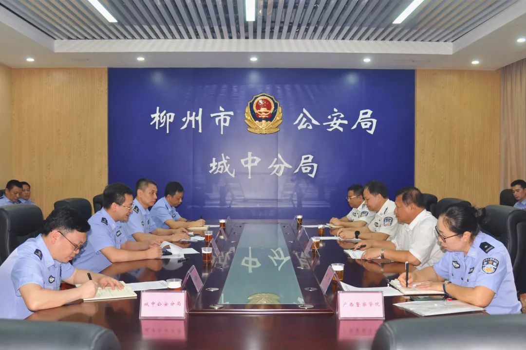 校局双方首先在柳州市公安局城中分局会议室举行座谈。会上,吴振兴代表柳州市公安局对警院的关心、支持表示感谢。他表示,在今后的共建工作中,柳州市公安局将坚持互惠共赢谋发展的理念,进一步深化校局合作机制,采取更加有效管用的办法和措施,扎实开展课题调研、实战训练、人才交流等系列活动,以实实在在的合作成果,推动双方事业不断取得新发展新进步。