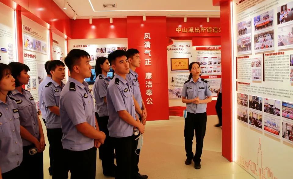 随后,讲解员为了让同学们更深入的走进中山派出所,先后带领同学们参观了中山派出所党员学习室、党建活动室、综合指挥调度室、叶叔调解室等。