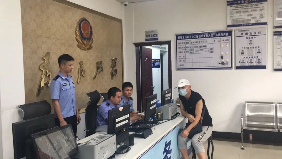 新城派出所增援学警蒋宇杰协同值班民警进行警情登记备案处理。