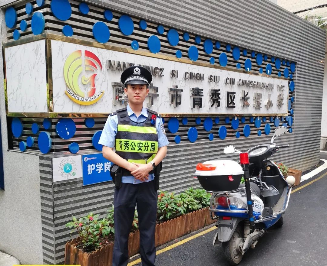 星湖派出所增援学警李京协同民警对辖区内小学进行日常巡逻维护工作。