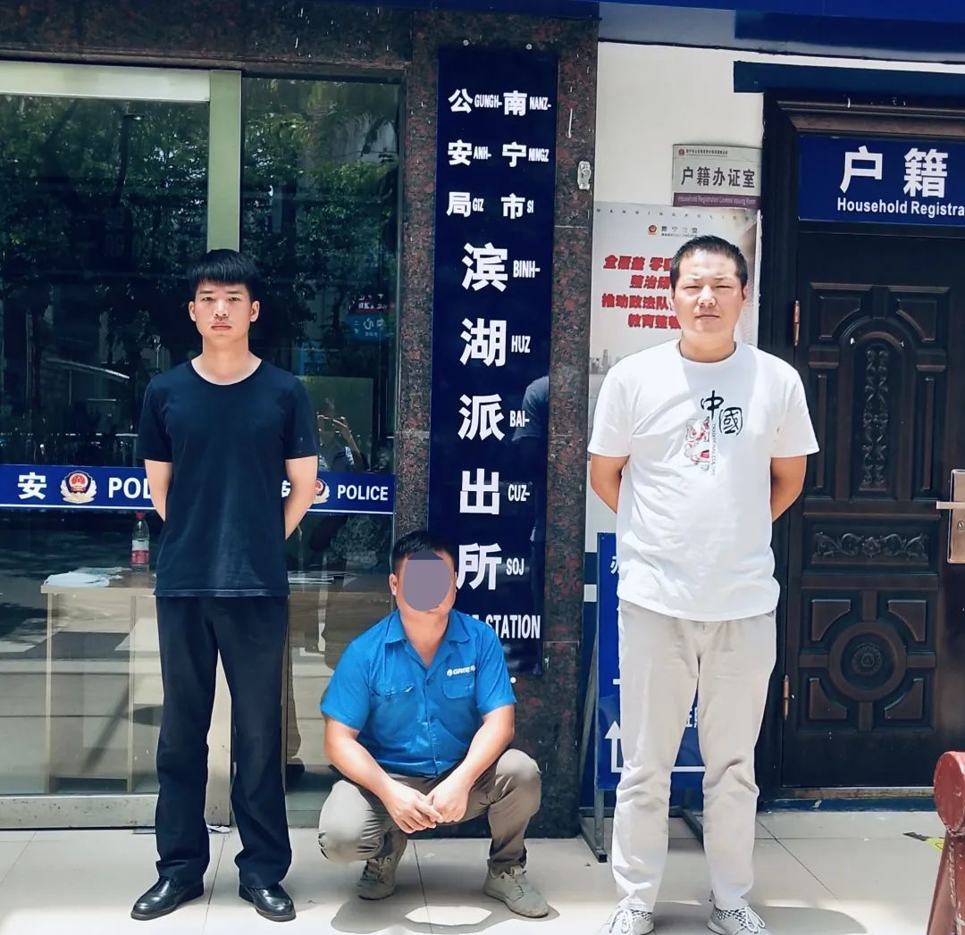 星湖派出所增援学警覃朝明协助调解群众纠纷。