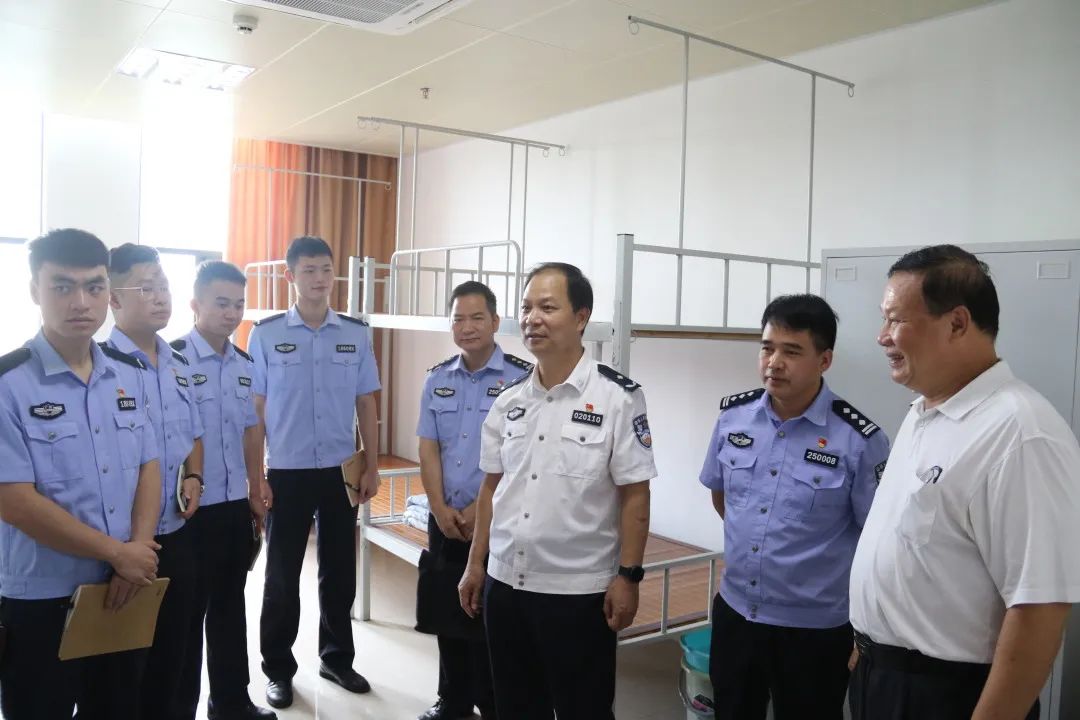 随后,覃院长一行人与单位领导一同查看了实习单位的食堂与宿舍,并询问宿食情况。在与同学们的交谈中询问同学们的生活条件、后勤保障是否到位,在实习单位是否吃得饱睡得好。并对同学们提出意见,要求同学们无论在哪,都要像在学校一样,保持警务化管理规定的严格要求,严明纪律作风,遵守相关规定。