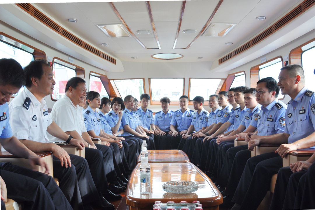 随后,覃院长一行带领实习生参加了水上执法巡逻。在座谈会上,各单位实习生代表分别向警院领导汇报了近2个月来在基层所队的所闻所见所感。覃泽敏院长听取实习生的实习感受后,对城中分局能给实习生提供一个教学、科研实践平台和良好的生活环境表示感谢,希望实习生在接下来工作中传承警校生的优良作风,甘于吃苦、乐于奉献、克服困难,严格遵守各项纪律,真正学到东西,圆满地完成实习任务。