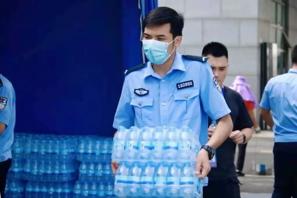 机动组的同学更是不畏艰辛,以高度饱满的精神随时接替空缺的岗位,抑或是辛苦搬运安检器材、物品,抑或是为同学们送去一箱又一箱的矿泉水,为工作中的炎热送去几分清凉。