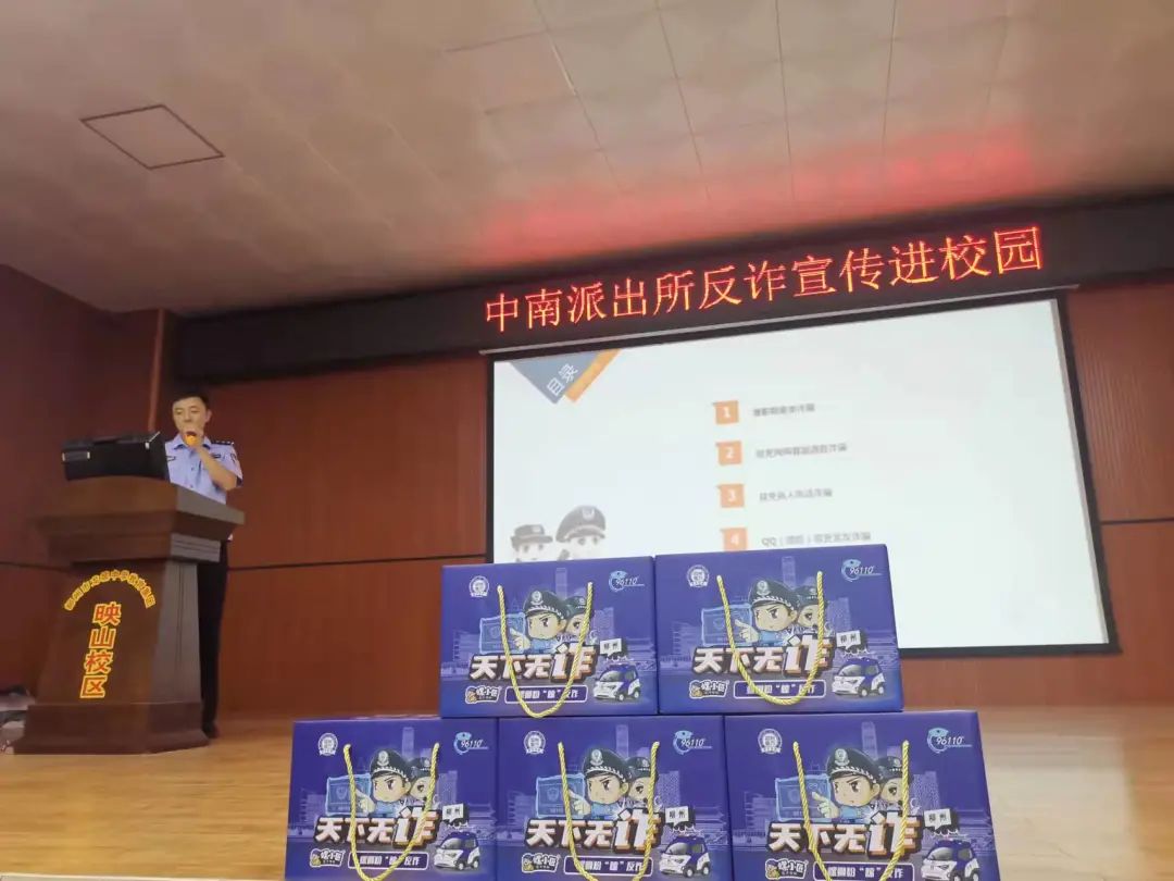 2021年10月15日,柳州市公安局城中分局中南派出所张自强教导员带领所里民警以及黄俊淞、包东民、李华德、姚景山四名实习警到辖区内的龙城中学进行反诈宣传教育,为祖国的花朵成长道路上保驾护航,提高学生自我防范意识,避免被诈骗的事情发生。