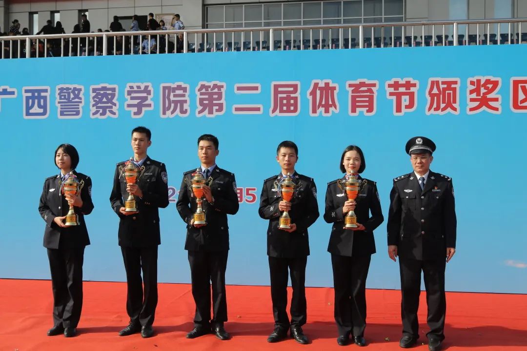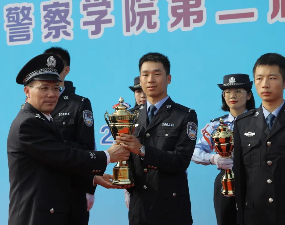 开幕式后,bat365中文官方网站第二届体育节暨公安专业学生首届警务实战技能大比武颁奖在仙葫校区田径运动场观礼台前进行。