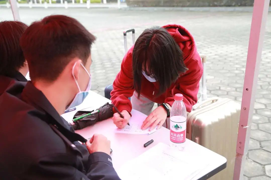 为配合学校疫情防控工作,让同学们能够顺利并有序返校,治安学院部分学子主动请缨,提前一日返校布置防疫开学工作相关事项。同学们在志愿者的帮助下,配合消毒测温、核验信息、签到交表等一系列工作,工作按防疫步骤井然有序进行。身为警校生,他们不忘担当,主动挑起责任,充分发扬奉献精神,认真服务同学。病毒无情人有情,志愿者们的无私奉献在三月春风的吹拂下更加亮眼。正是因为有他们,治安学院返校工作圆满完成。