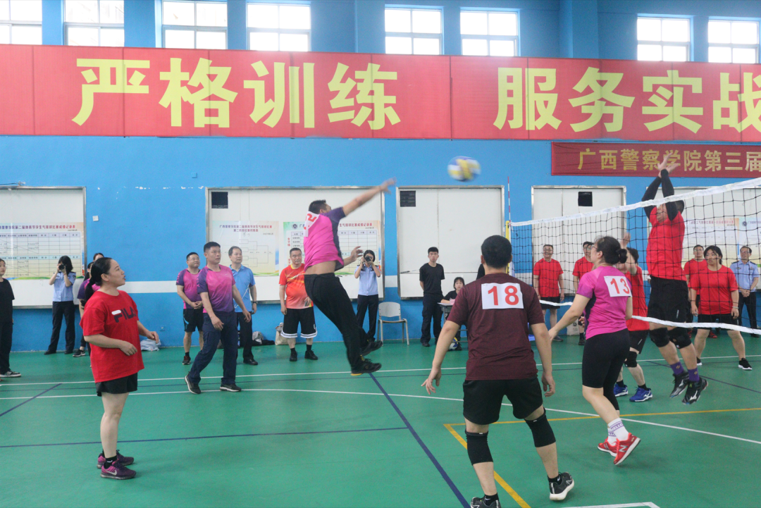 此次教职工气排球比赛按校属各分工会分组参赛。治安学院分工会的老师们本着“友谊第一,比赛第二”的体育精神,与其他分工会组展开角逐。