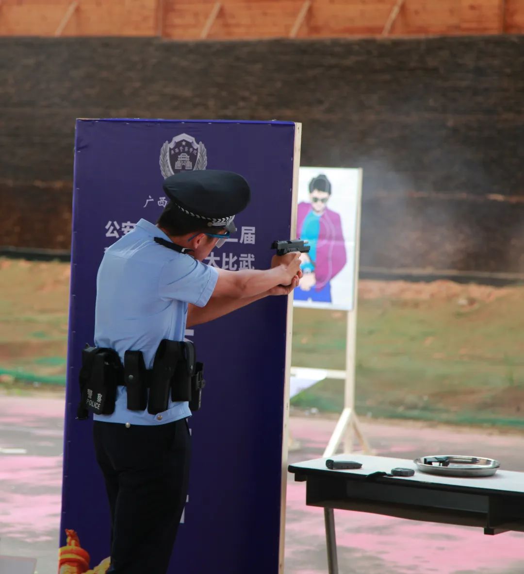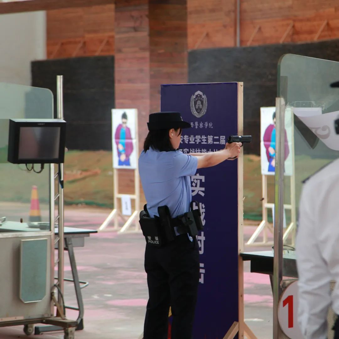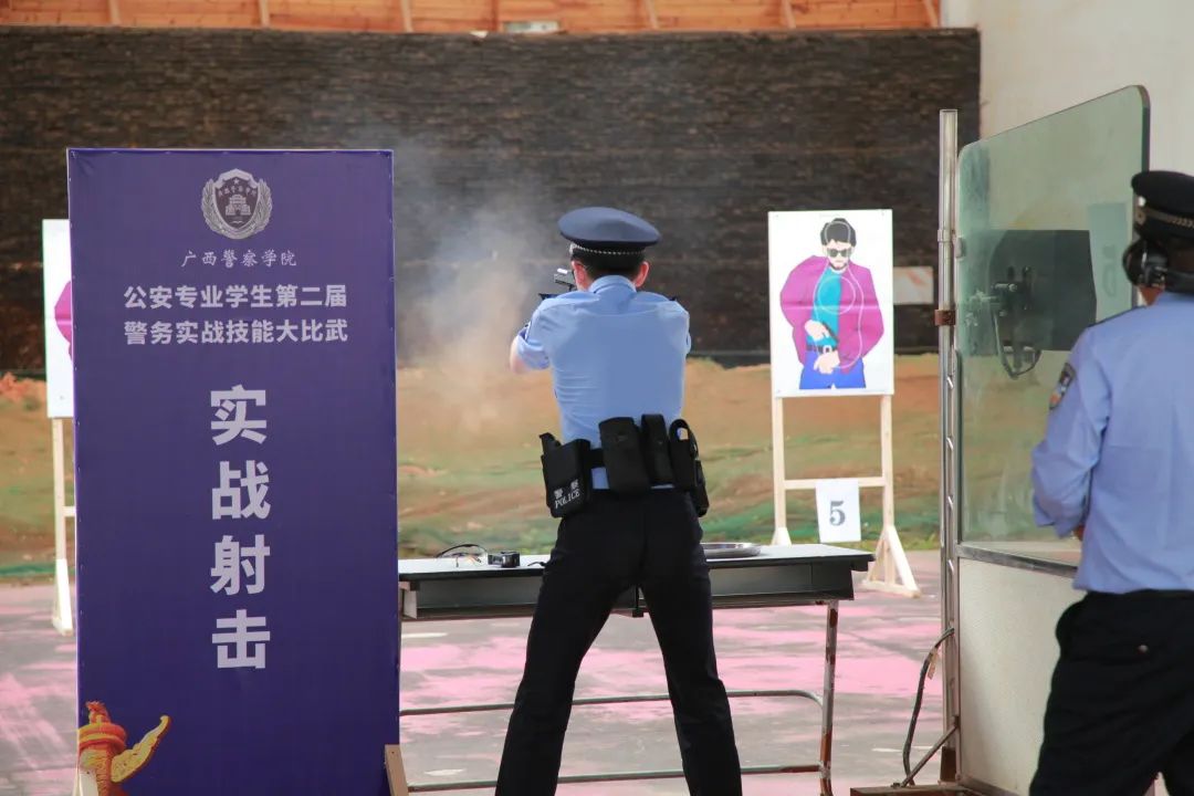 实战射击项目在射击馆内火热开展。治安学子们认真听取裁判口令,动作连贯流畅,射击快速精准,充分展示了出众的警务射击技能。