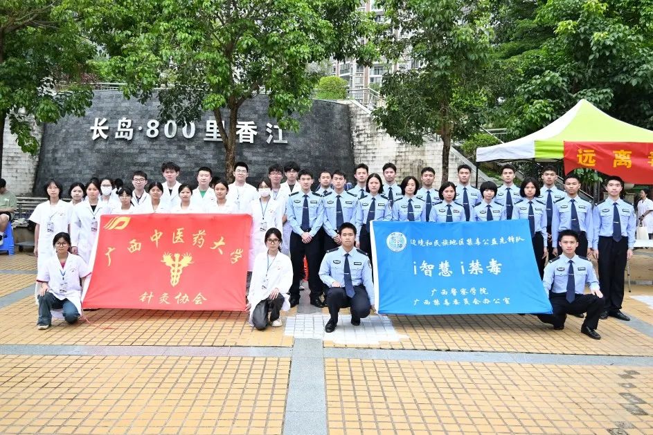 5月25日这个特殊的日子里,bat365中文官方网站i智慧i禁毒宣传协会联合南宁市公安局仙葫派出所和广西中医药大学针灸协会、运动防护队,走进长岛八百里香江社区,共同开展了以“携手禁毒防艾,共创健康家园”为主题的禁毒防艾科普宣传活动。