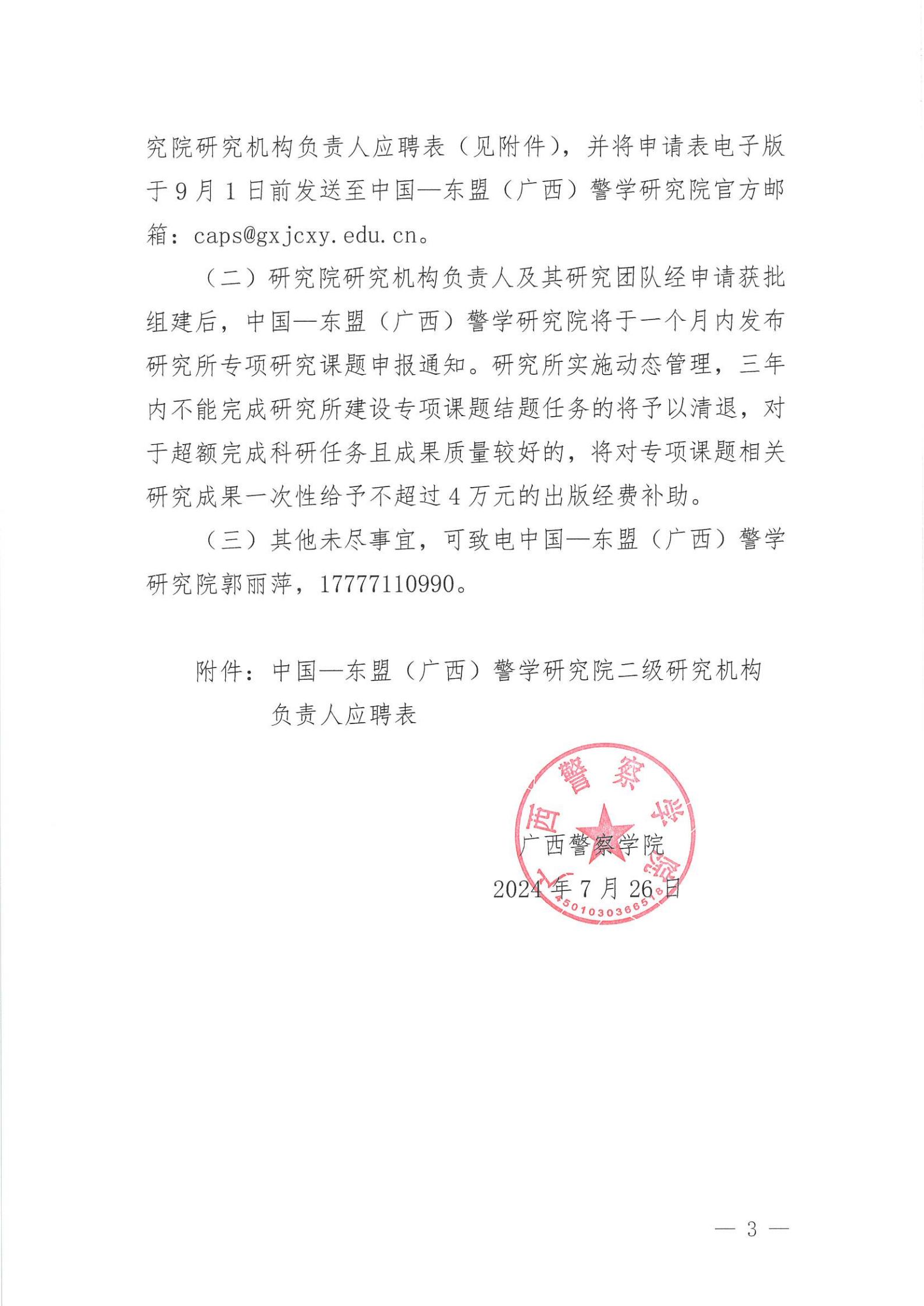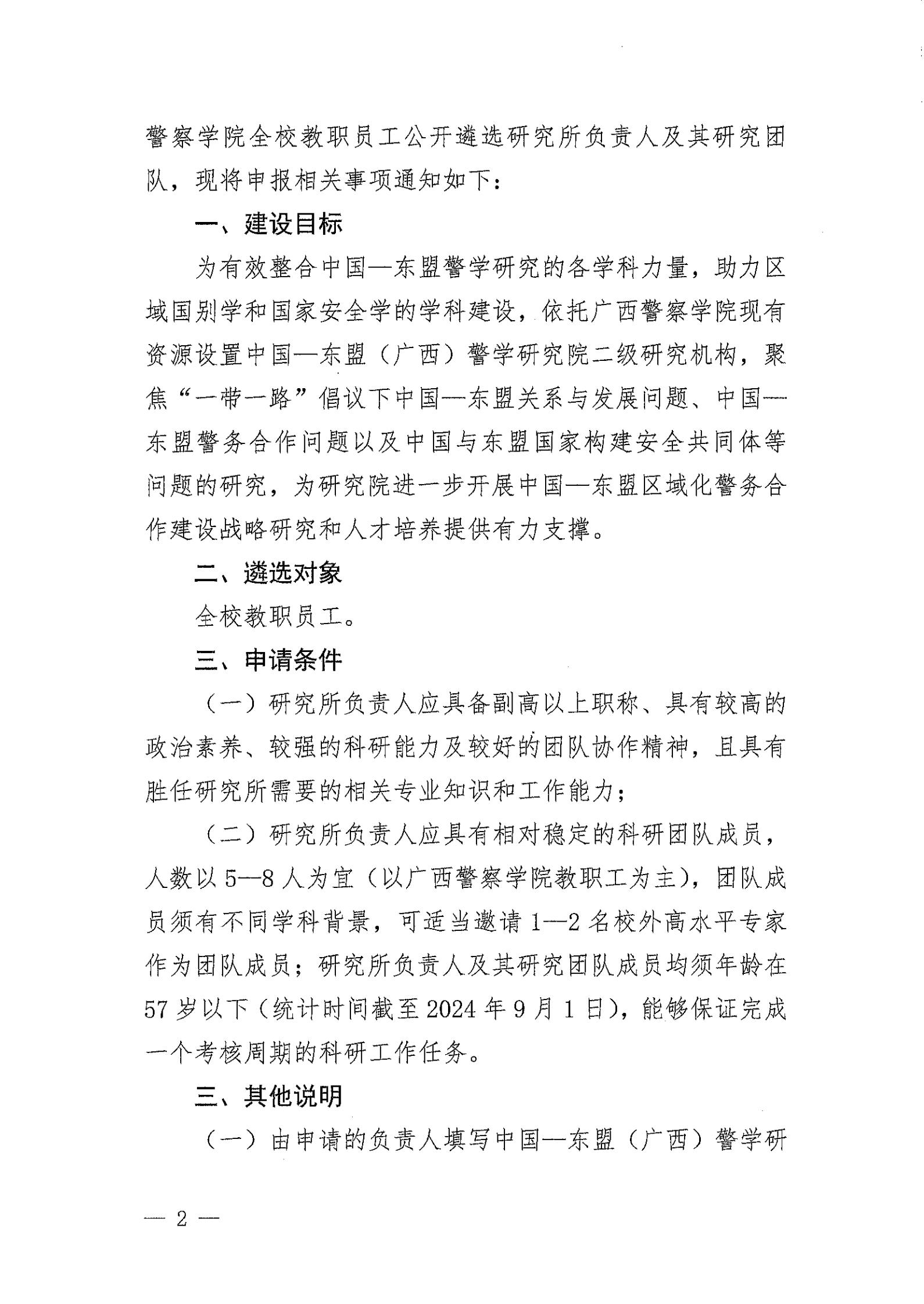 bat365中文官方网站关于公开遴选中国—东盟 (广西)警学研究院下属研究机构负责人的通知 来源: 发布时间:2024-07-26 17:25:26 浏览次数: 次 【字体:小 大】 附件:中国—东盟(广西)警学研究院二级研究机构负责人应聘表.doc 分享到: 【打印正文】