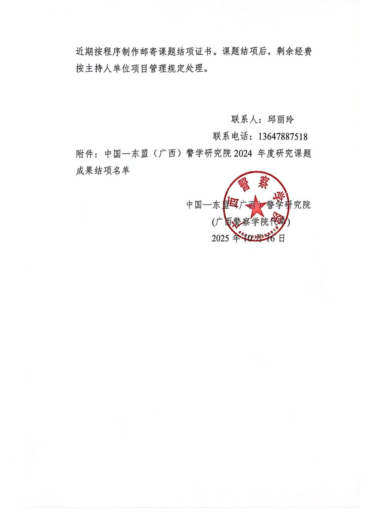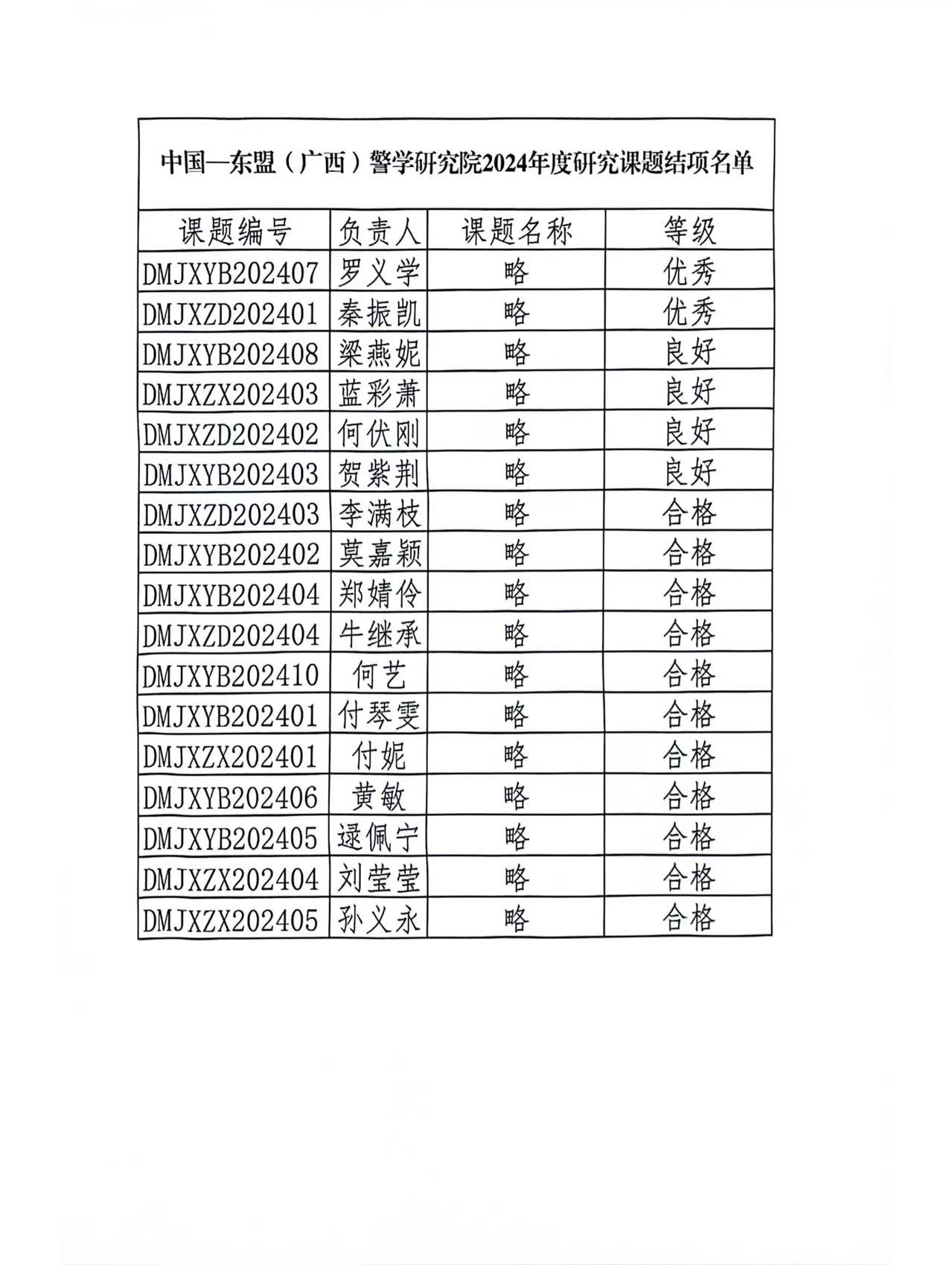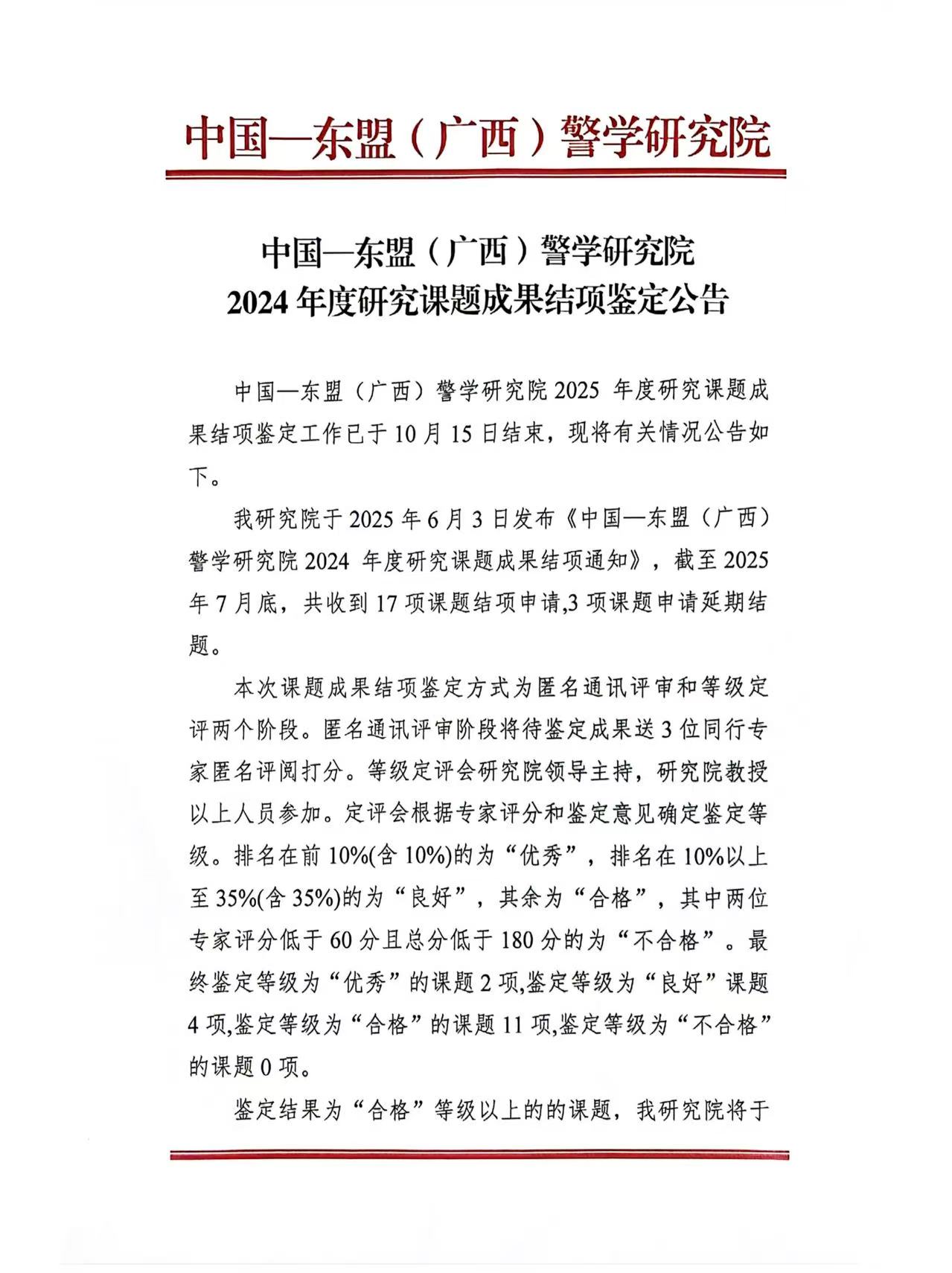 中国-东盟(广西)警学研究院2024年度研究课题成果结项鉴定公告