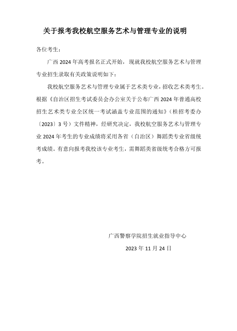 关于报考bat365航空服务艺术与管理专业的说明