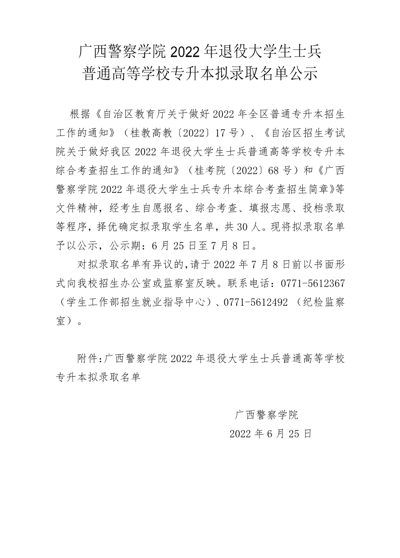 bat365中文官方网站2022年退役大学生士兵普通高等学校专升本拟录取名单公示