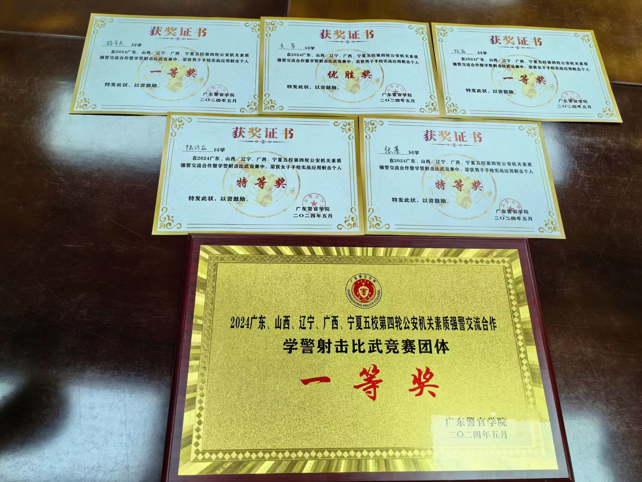 荣获2024广东、山西、辽宁、广西、宁夏五校第四轮公安机关素质强警交流合作学警射击比武竞赛团体一等奖